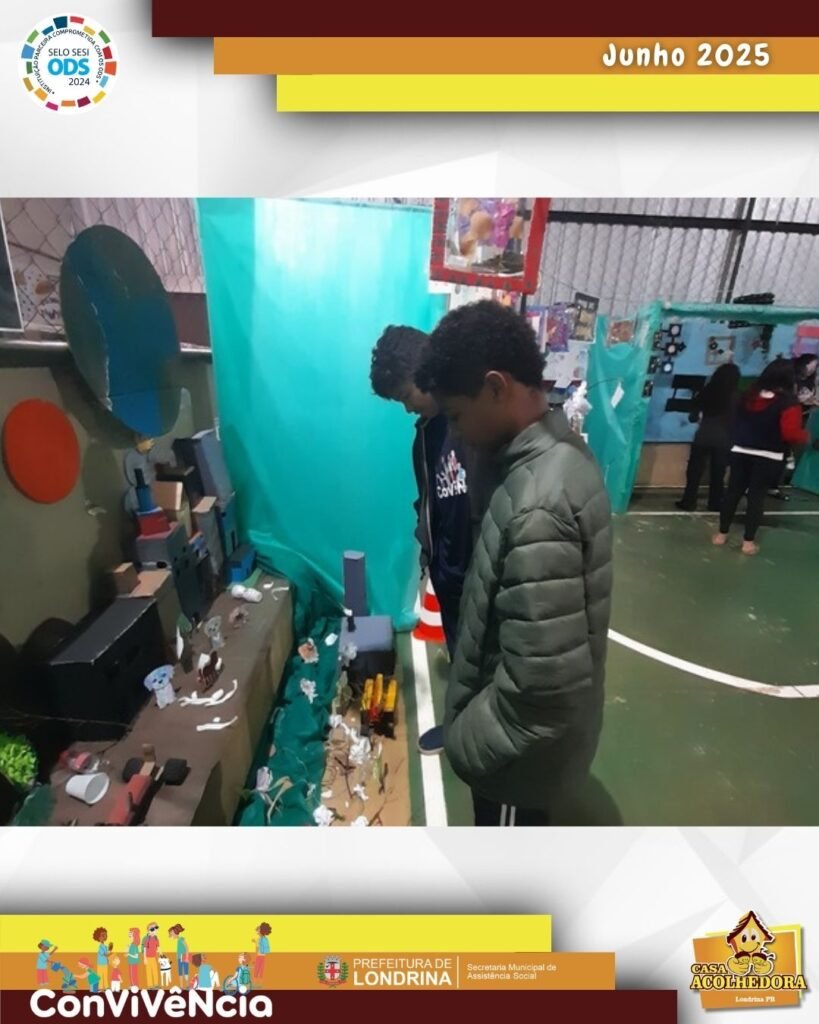 Por meio dos stands refletiram como nós humanos destruímos a natureza, e deram sugestões de como mudar essa realidade.