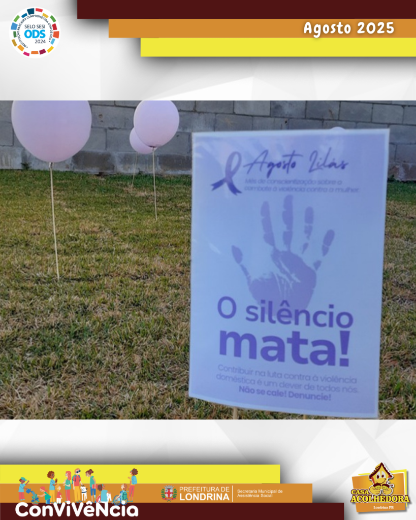 No dia 19/08 o grupo Mulheres com Propósitos deu continuidade ao Combate e enfrentamento pelo ” Fim da Violência contra as Mulheres ” no Agosto Lilás. O grupo foi conduzido pela Assistente Social da Casa Acolhedora, onde abordou sobre a identificação das violências e os equipamentos de proteção.