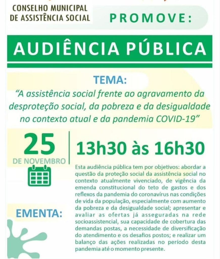 A Casa Acolhedora é um dos pontos de apoio onde se está participando da Audiência Pública-Virtual, organizada pelo Conselho Municipal de Assistência Social-CMAS, com o Tema: “A assistência social frente ao agravamento da desproteção social, da pobreza e da desigualdade no contexto atual e da pandemia COVID-19”.