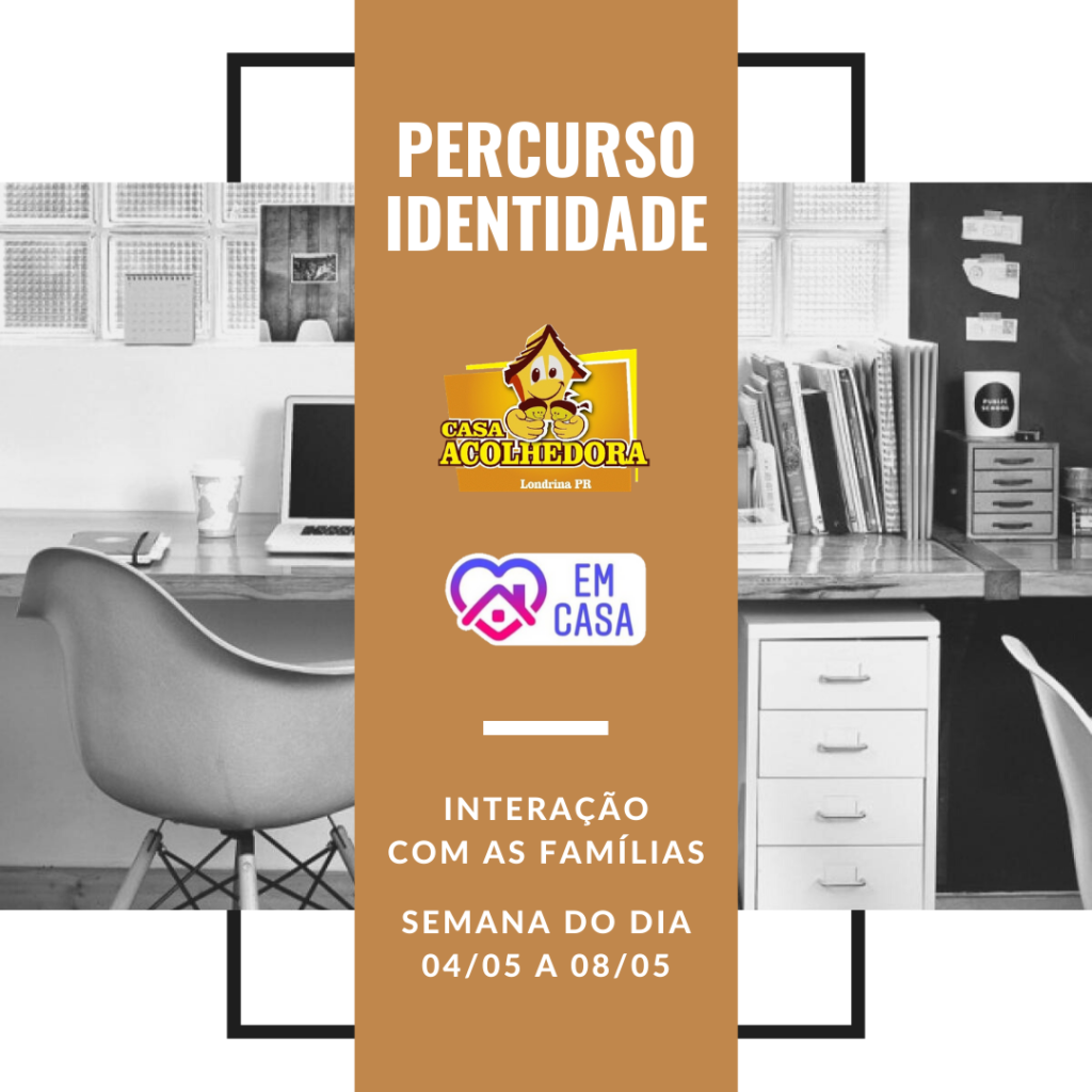 Compartilhamos com vocês o trabalho de interação pedagógica realizado com os educandos e famílias ao longo dos dia 14/04 a 17/04. • Percurso: Identidade • Propostas: Atividade física (Relaxamento e alongamento), Atividade sobre identidade, Atividade: Você me conhece?, Atividade para falar sobre sentimentos e jogos/brincadeiras para integração familiar.