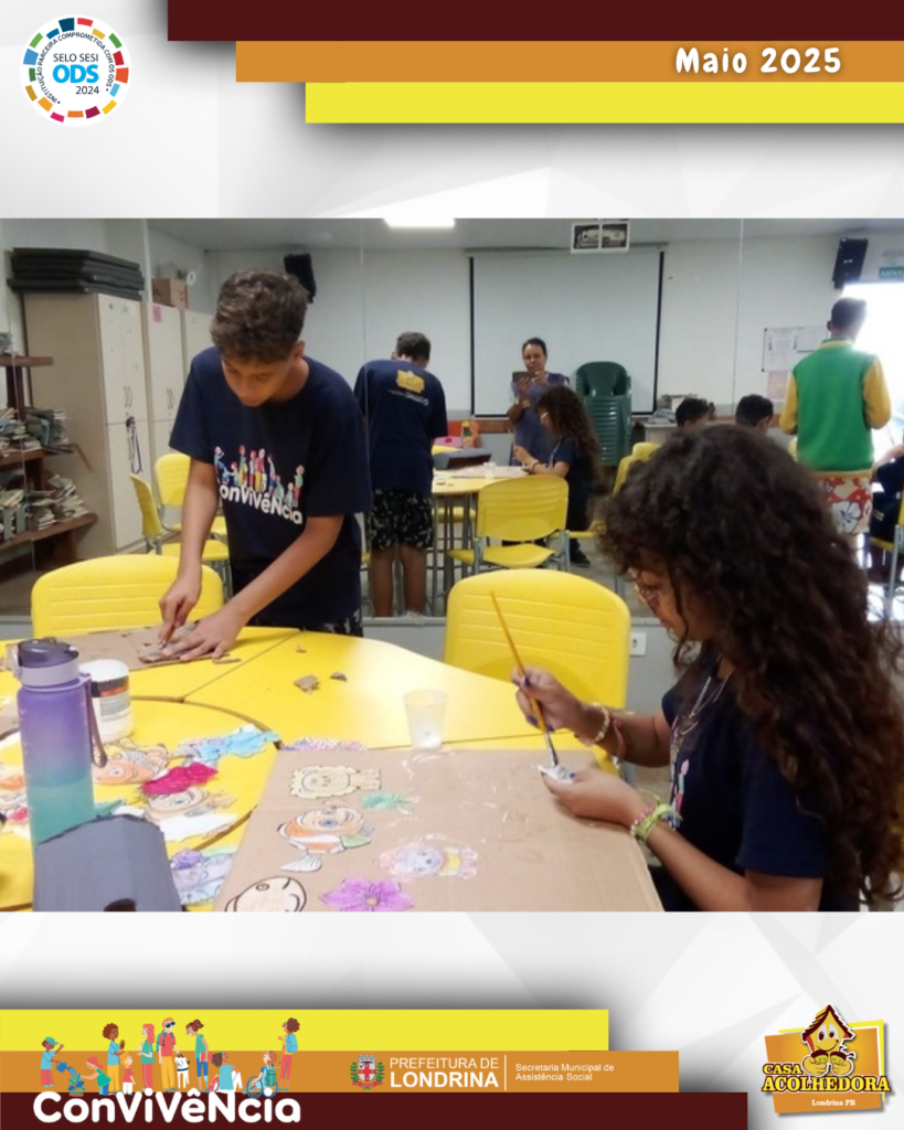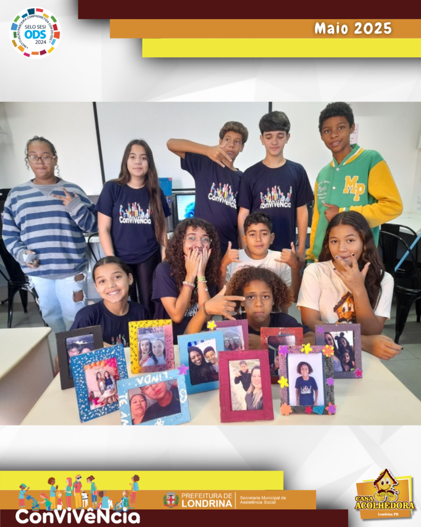No mês de maio as crianças e adolescentes também fizeram lembrancinhas para homenagear as pessoas que cuidam deles. Confeccionaram cartões, flores e porta-retratos reutilizando papelão. As famílias ajudaram enviando as fotos para serem colocadas nos porta-retratos. Foi um show de criatividade.