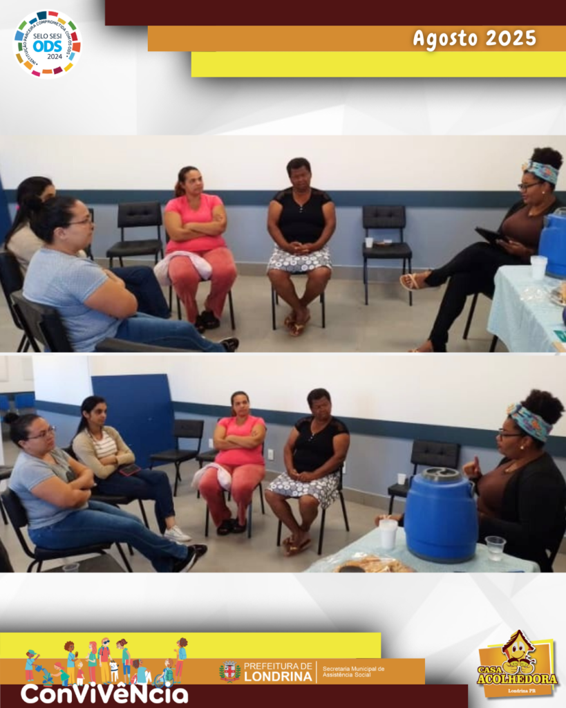 No dia 05/08 o grupo de mulheres se reuniu pelo ” Fim da Violência contra as Mulheres ” onde a integrante do grupo Karen ( estudante de Serviço Social – UEL ) conduziu o momento com falas e dinâmica direcionada as estratégias de enfrentamento.
