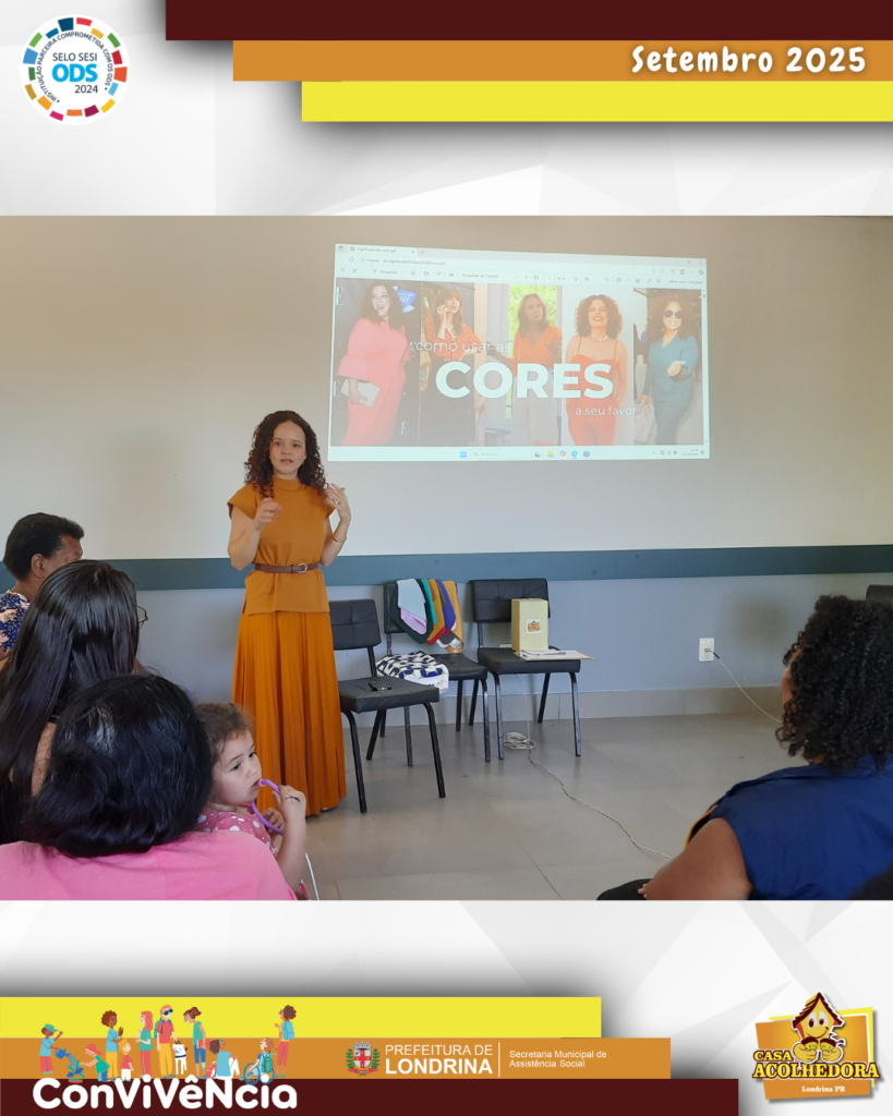 No mês de Setembro foi realizado um Grupo de Mulheres com a profissional Eloane Melo – Consultora de Imagem e estilo, que abordou sobre o Significado das cores e realizou coloração pessoal com as mulheres do grupo. Foi um momento muito importante, onde ressaltamos a valorização da vida. Além de ser uma abordagem diferenciada acerca do Setembro Amarelo, que nos lembra que a vida pode ser imensamente colorida.