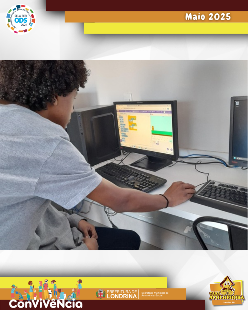 Atividade de Inclusão Digital com o voluntário Samuel: adolescentes apreendendo e criando jogos utilizando as ferramentas tecnológicas por meio da linguagem visual.
