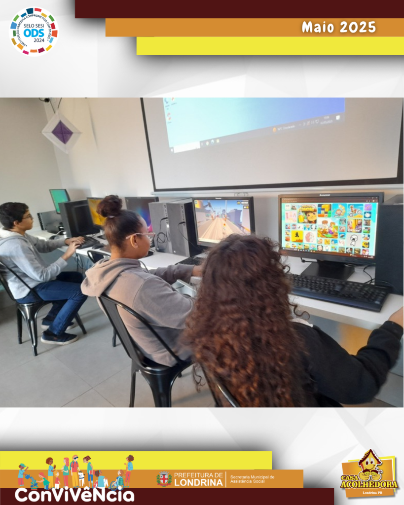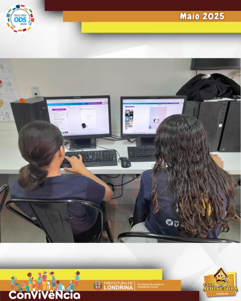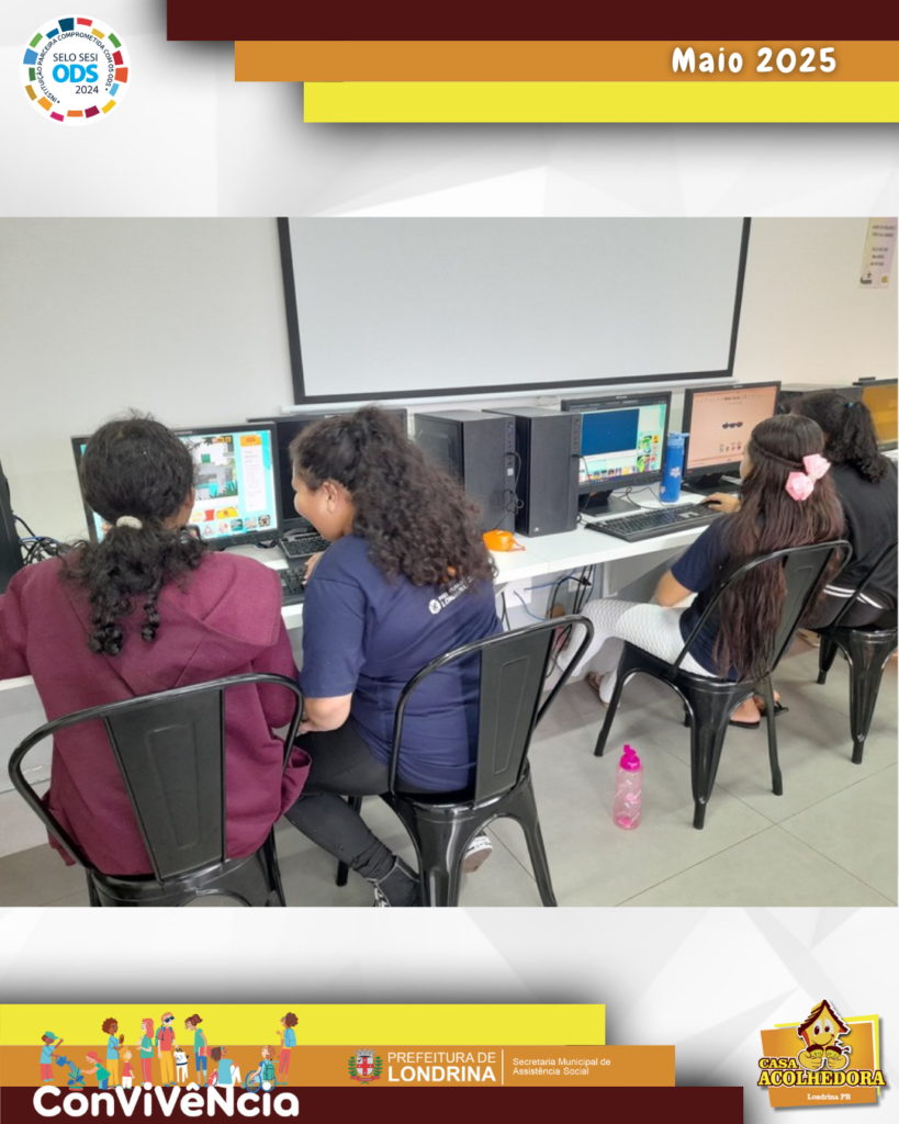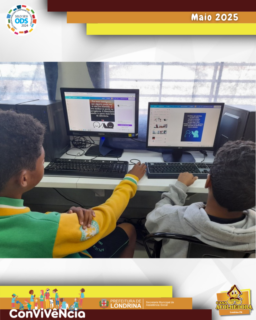 Também utilizaram os computadores para pesquisas relacionadas ao Percurso, criando cartazes utilizando o canva e jogos on-line.
