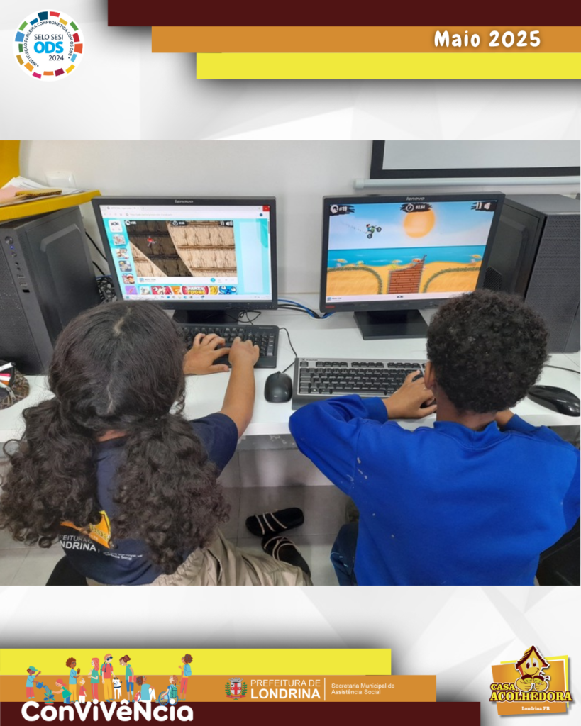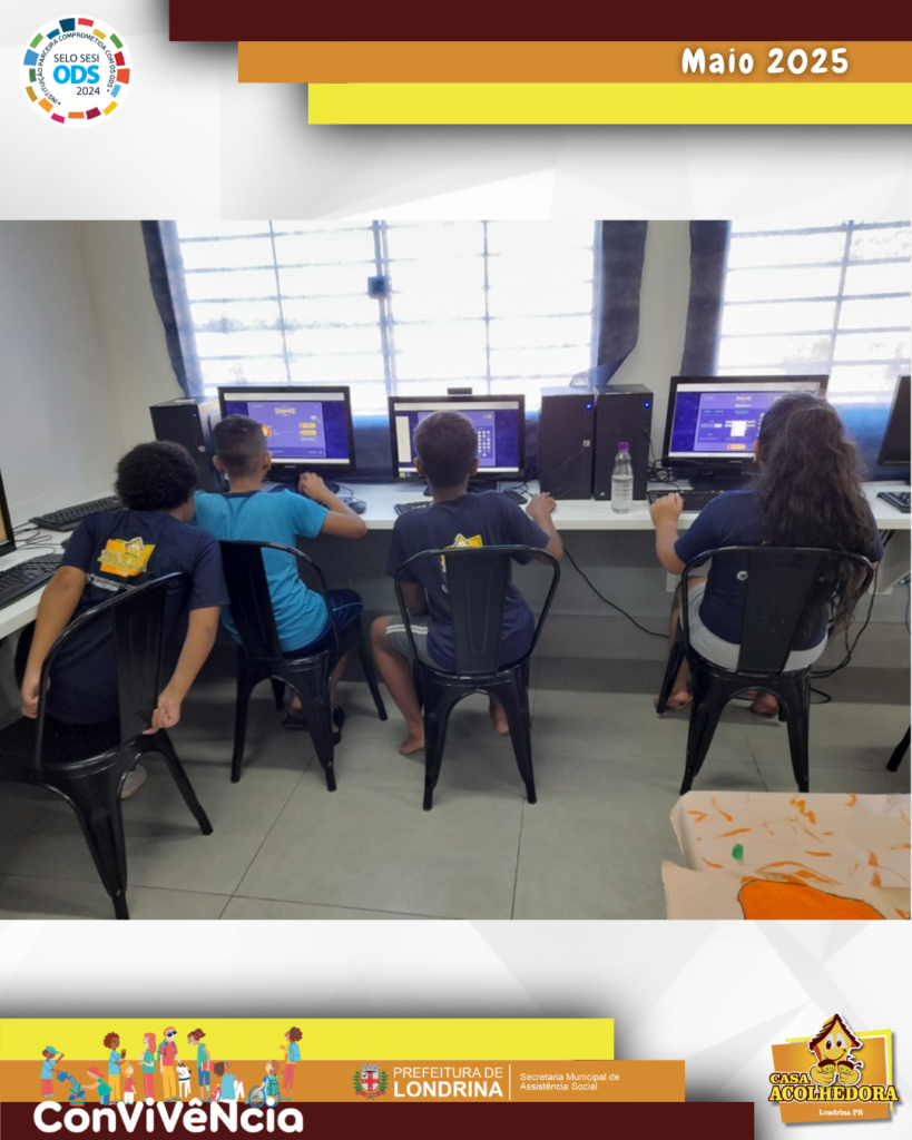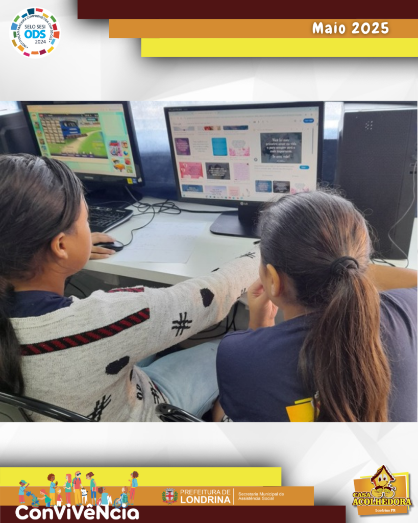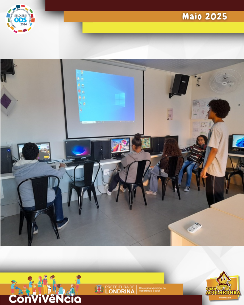 Também utilizaram os computadores para pesquisas relacionadas ao Percurso, criando cartazes utilizando o canva e jogos on-line.