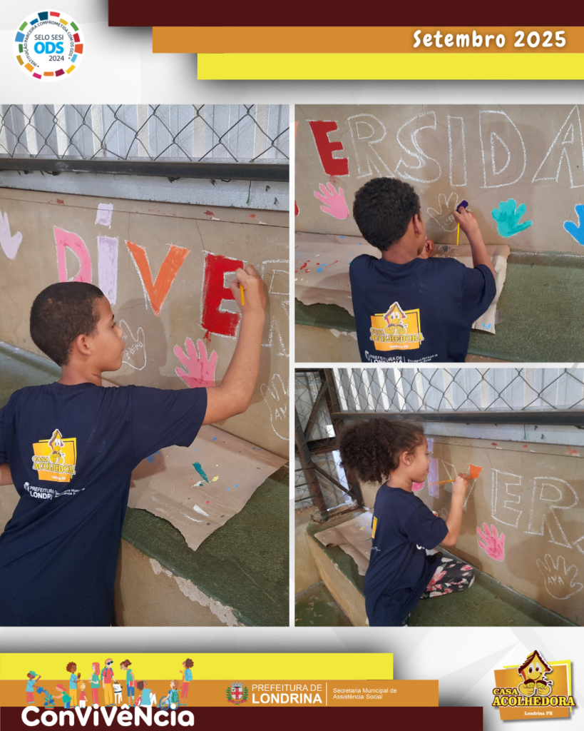 Atividade Mural da Diversidade: Teve como objetivo trabalhar o pertencimento aos espaços da instituição, valorizando a diversidade e a história de cada educando, proporcionando a criação de imagens que representam as diferenças existentes em cada criança, e enfatizando a importância do respeito, acolhimento e inclusão de quem é diferente de nós. Houve muita dedicação nos trabalhos realizados e o resultado voltado à convivência e ao respeito a essa diversidade foi alcançado com êxito.