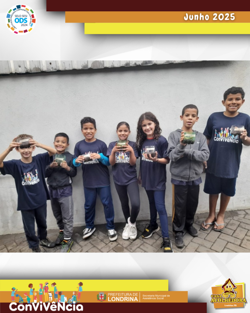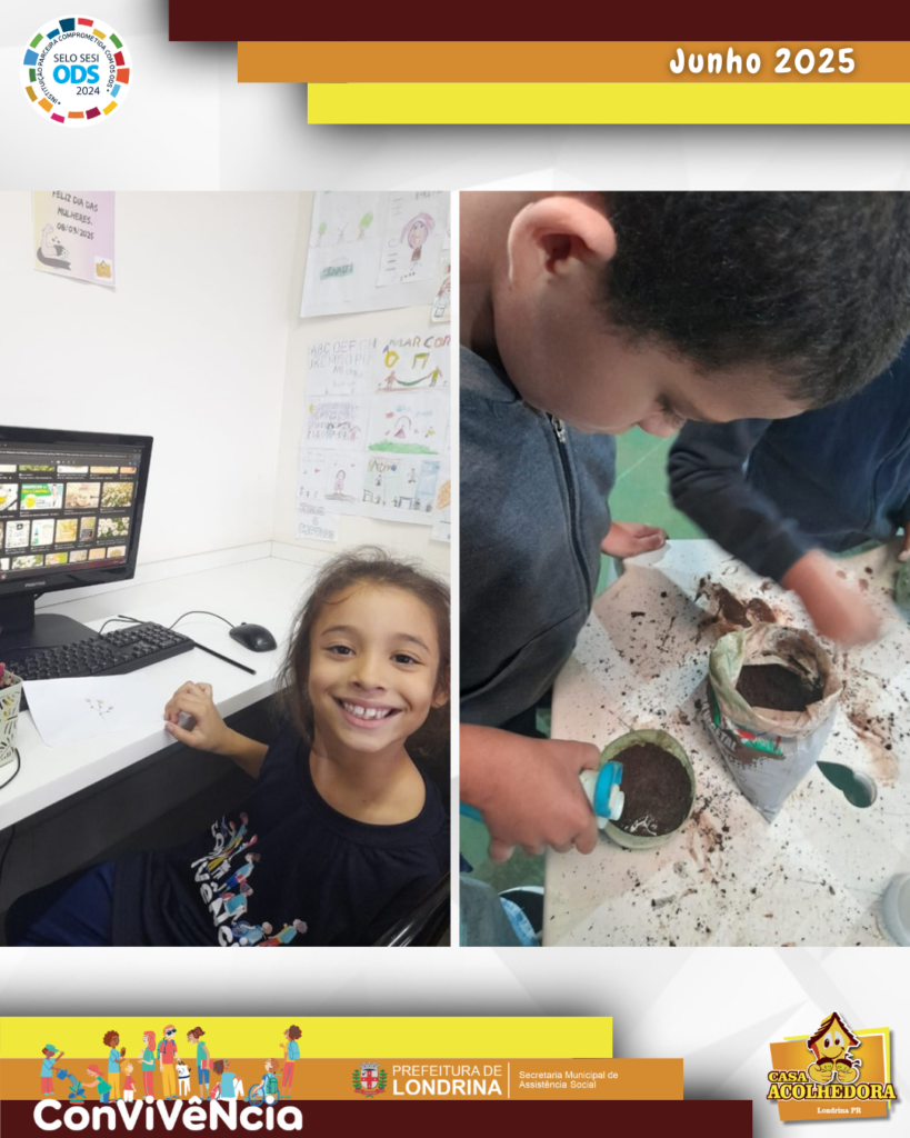 As crianças também pesquisaram sobre plantas que ajudam no combate à dengue, plantas aromáticas, medicinais e condimentares. Fizeram um cartaz e plantaram sementes reutilizando garrafa pet.