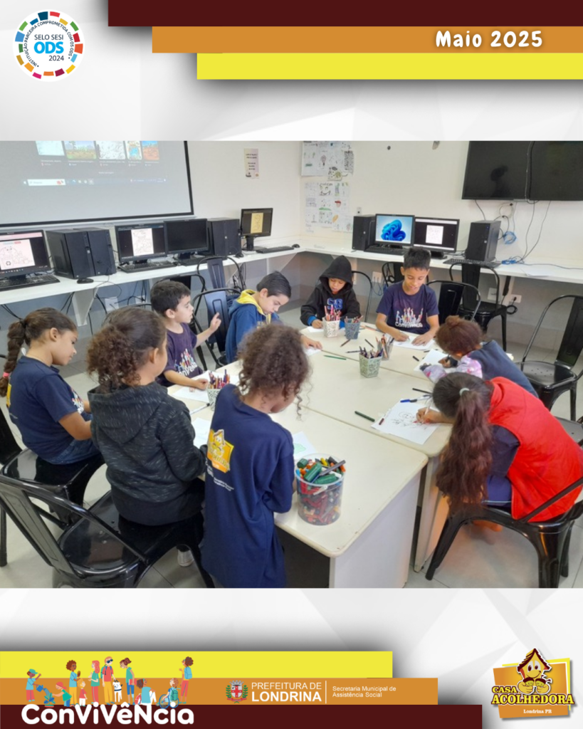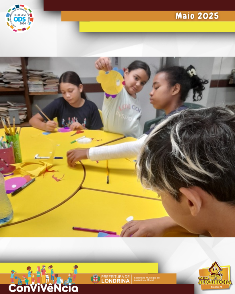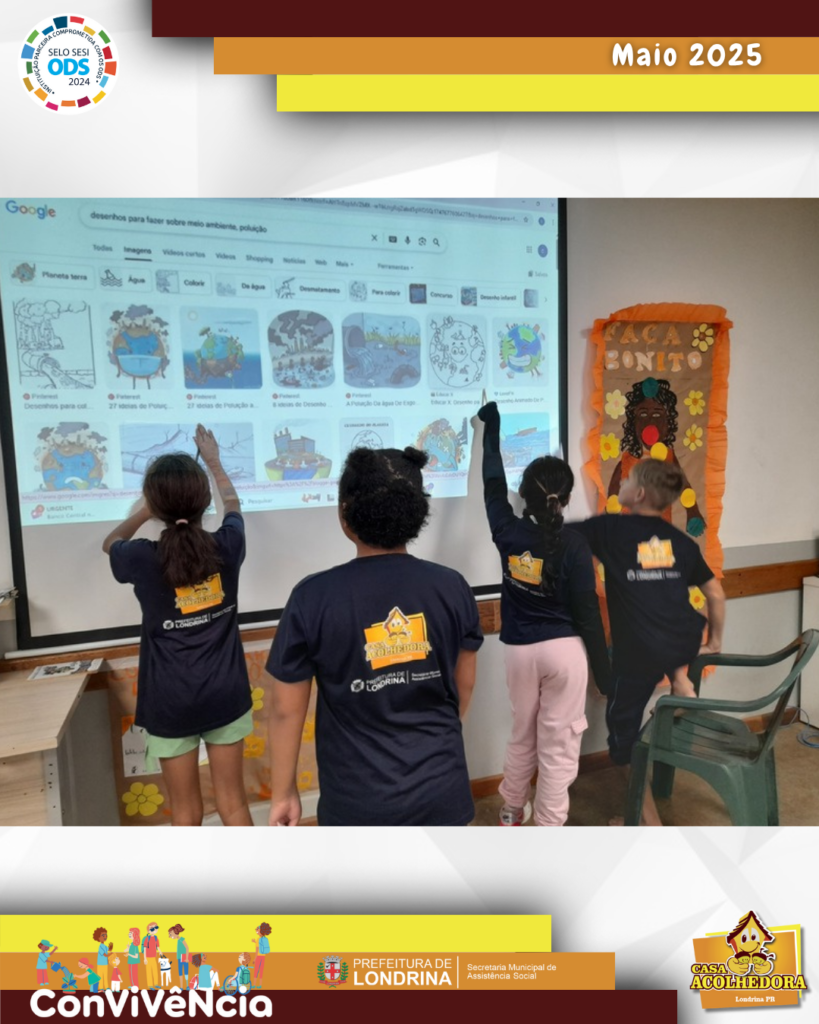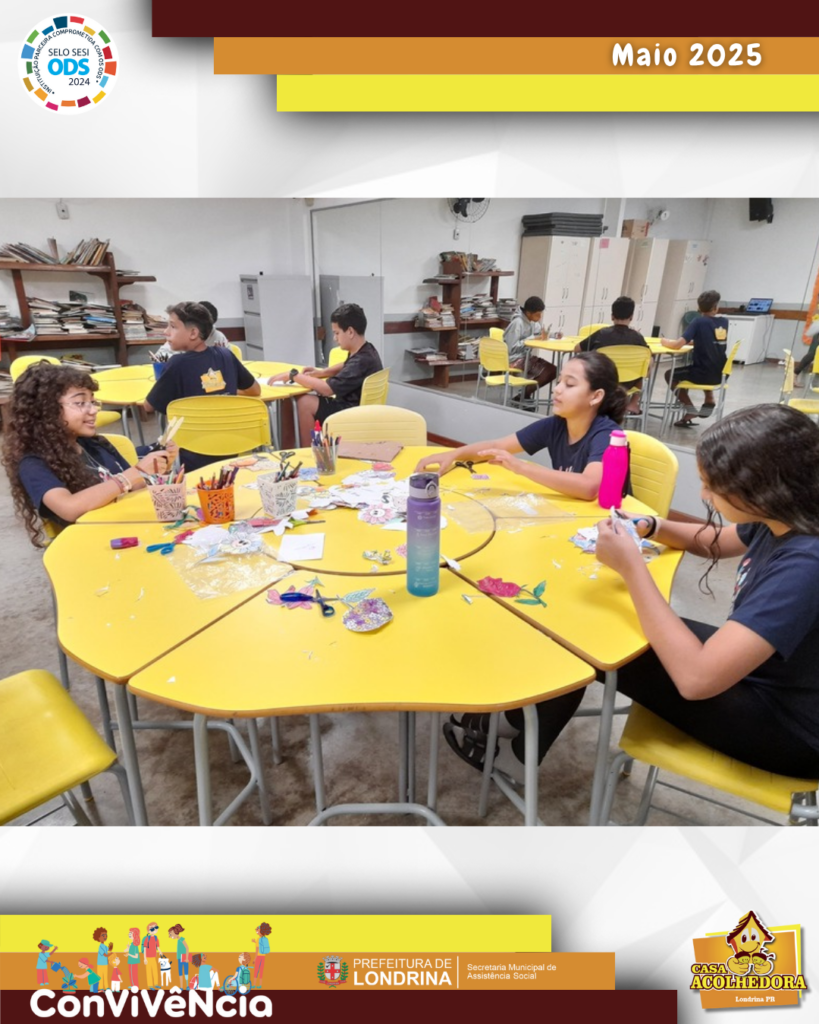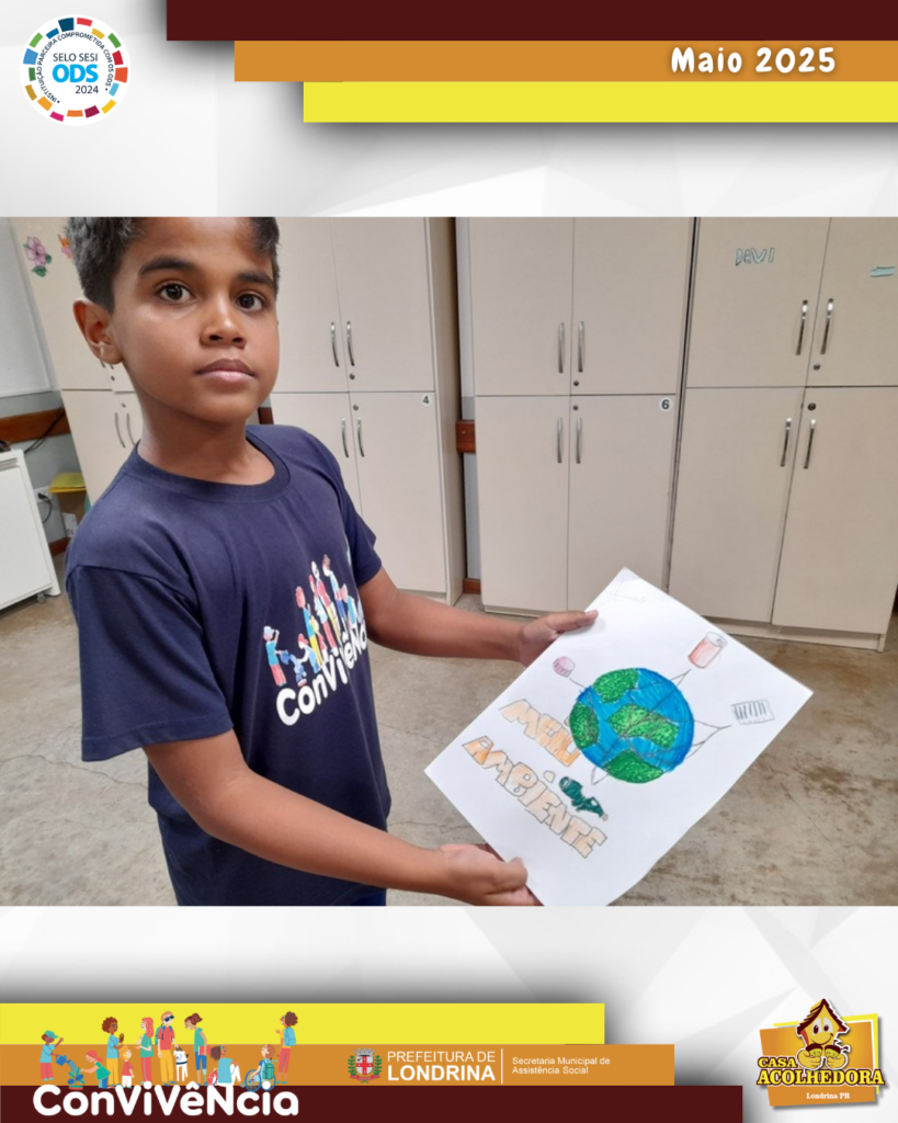 Criação de mural sobre poluição sonora, árvores de papelão para maquete e passaram verniz na lixeiras.